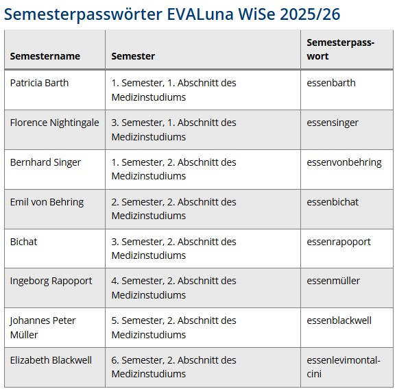 Hier erfahren Sie das jeweilige Semesterpasswort zur Nutzung von EVALuna.